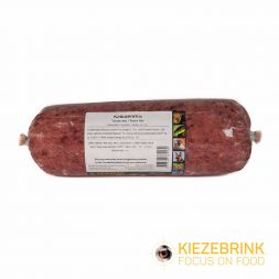 100% Dinde: dos charnus (35%), cœur (25%), viande (25%), cous (10%), foie (5%). Facile à digérer et de la volaille maigre. Conviens pour tous les chats.