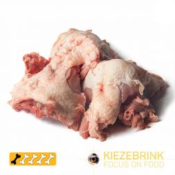 85% Poulet: dos charnus (50%), gésier(15%), foie (10%), coeur (10%), 15% mix des légumes: carotte (5%), épinards (5%), chou-fleur (5%).